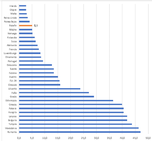 Gráfico 1: Ratio de hacinamiento por países, 2017.