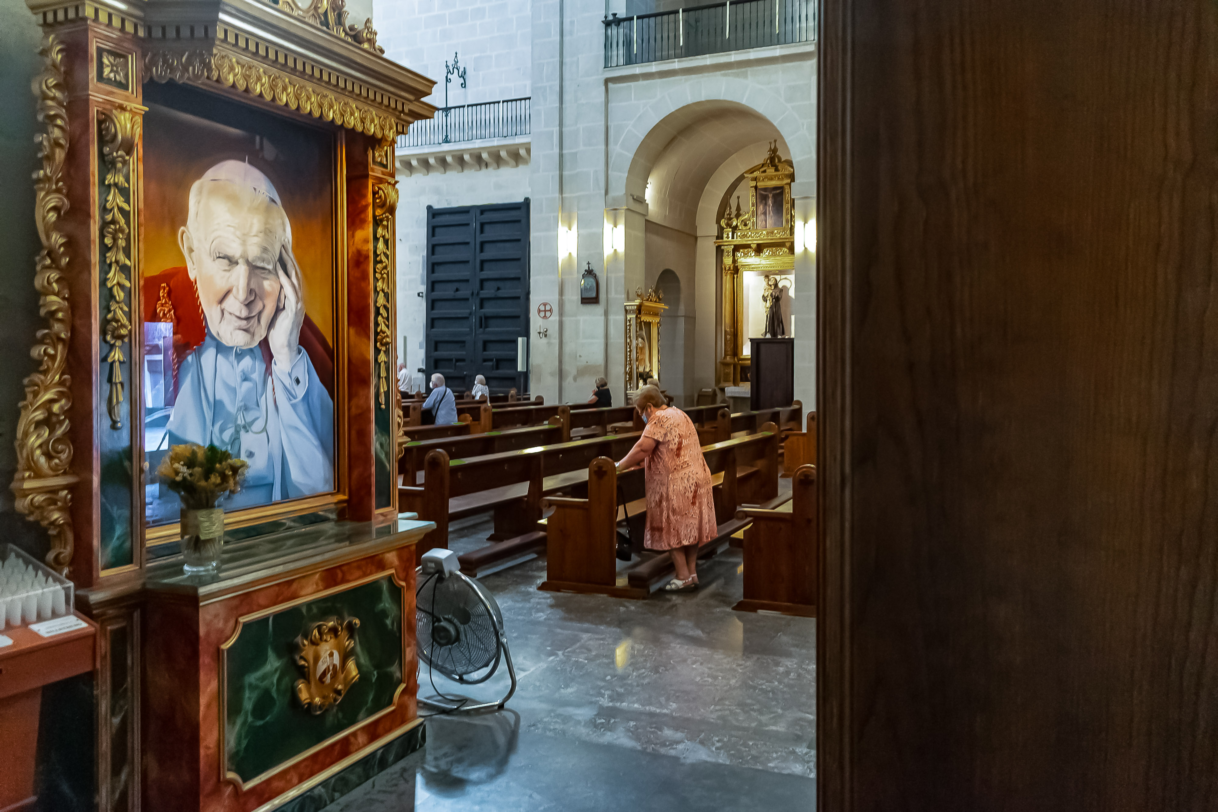 Foto realizada en la Concatedral de Alicante, en esos momnentos por la mañana se estaba realizando la homilia matinal, para los creyentes que son muchas de las personas mayores en su cita diaria a misa, la fe en Dios es el motor de sus vidas.