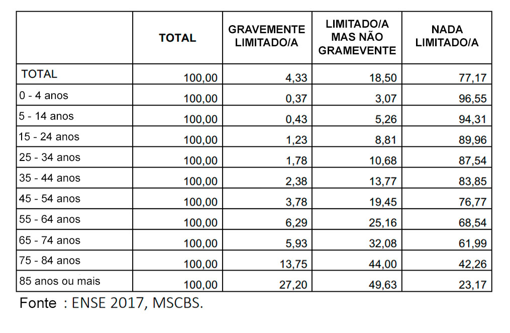 A promoção da idade está muitas vezes associada à dependência funcional porque uma grande proporção de pessoas com deficiência está no grupo daqueles que atingiram os 65 anos de idade; esta é também a faixa etária com mais limitações nas atividades da vida diária.