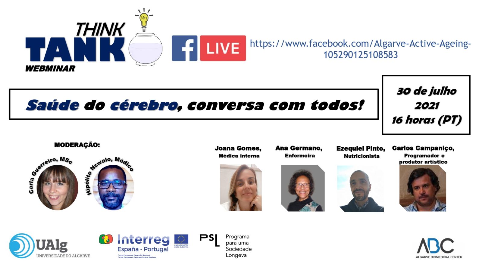 Este Think Tank vai ser emitido em direto no Facebook do Algarve Active Ageing, às 16h00 de Portugal. Pode aceder através do link e colocar as suas questões.
