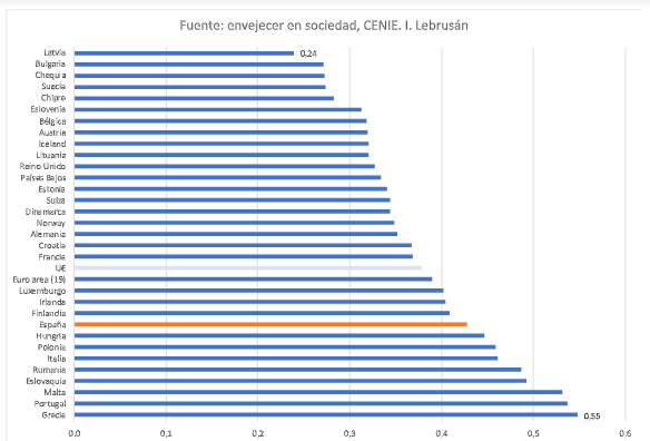 Fonte: Elaboração própria para o CENIE (Envelhecer em sociedade) com base nos dados do Eurostat.