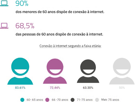 - Mais de 68% dos idosos têm conexão à Internet.